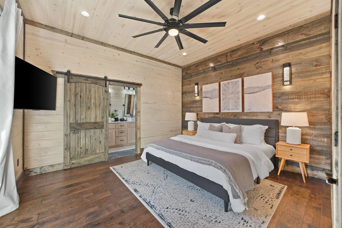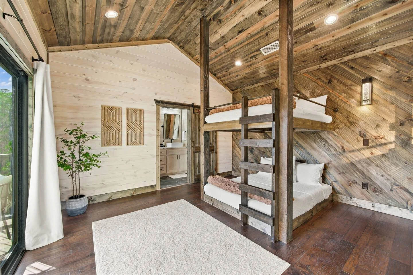 This was a 5 bedroom rental cabin newly built with the addition of a large game room/bunk room on the third floor. This was a full furnishing job that my clients entrusted me with from start to finish. From selecting all of the furniture, sheets, bath towels, dishes, pillows, bedding, decor and all of the outdoor furniture, we purchased and assembled it all. This beautiful cabin was a labor of love but seeing the final product come together made it all worth it!